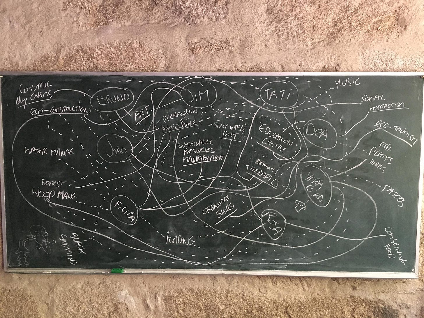 One of the many workshops we did with the first group I participated in. This one was about the skills that each of us could bring to the project. We worked intensively with this group for three years, but once the talks started to get more serious, we lost member by member when we couldn’t find agreements about issues like veganism and substance (ab)use. Also corona happened, and at the end of the third year the three of us that remained “buried” our dreamchild together.